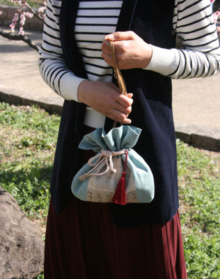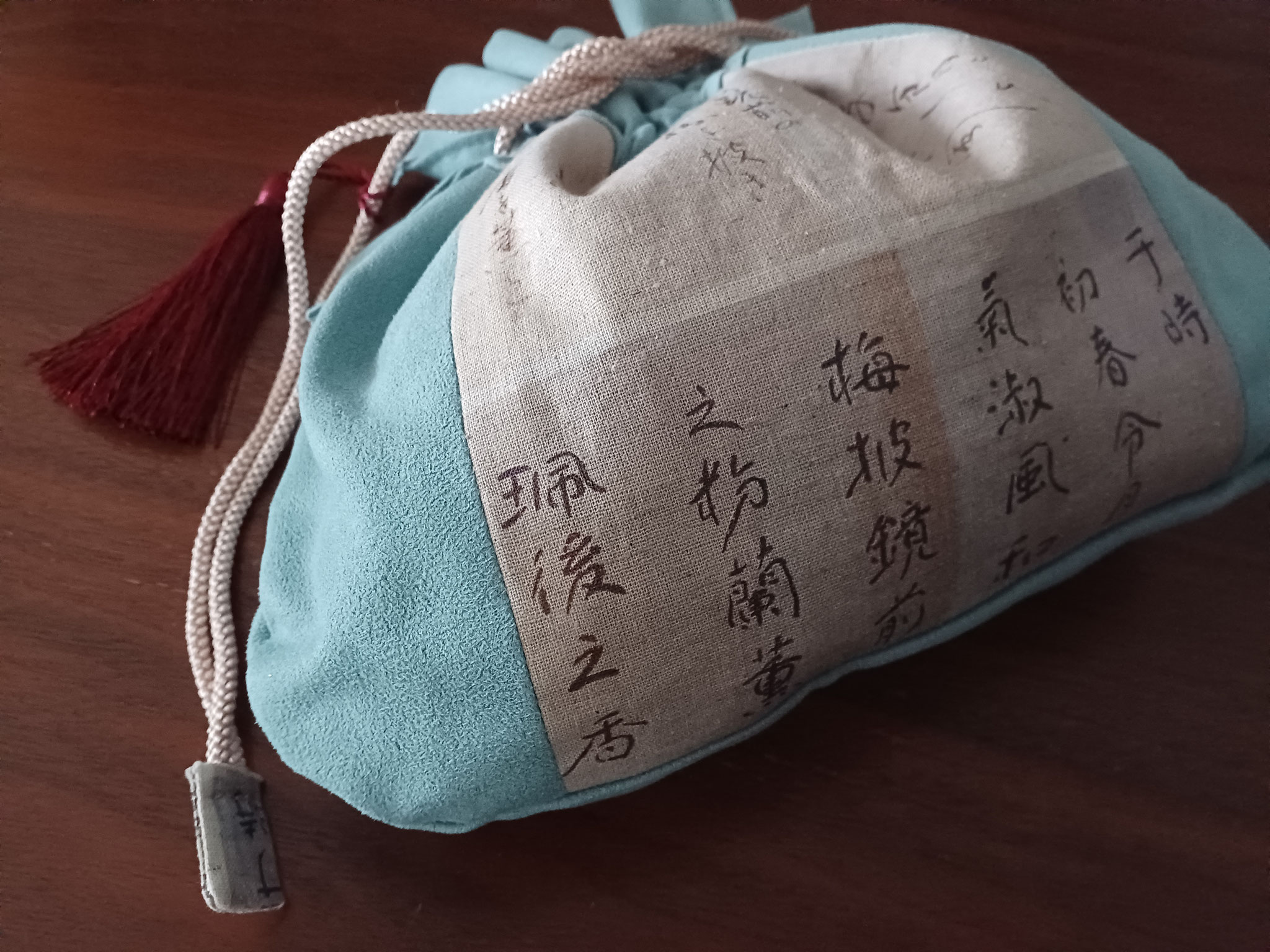 万葉集第五の序文の歌が、和やかな気持ちにさせてくれる巾着袋